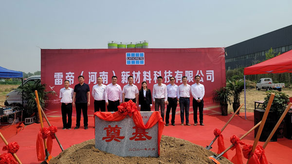 2021年6月11日,備受矚目的雷帝河南新工廠奠基儀式在河南隆重舉行。本次雷帝再次啟程成立雷帝(河南)新材料科技有限公司,總占地面積6000平方,初期構(gòu)建干粉生產(chǎn)線2條,規(guī)劃干粉年產(chǎn)能15萬噸。
