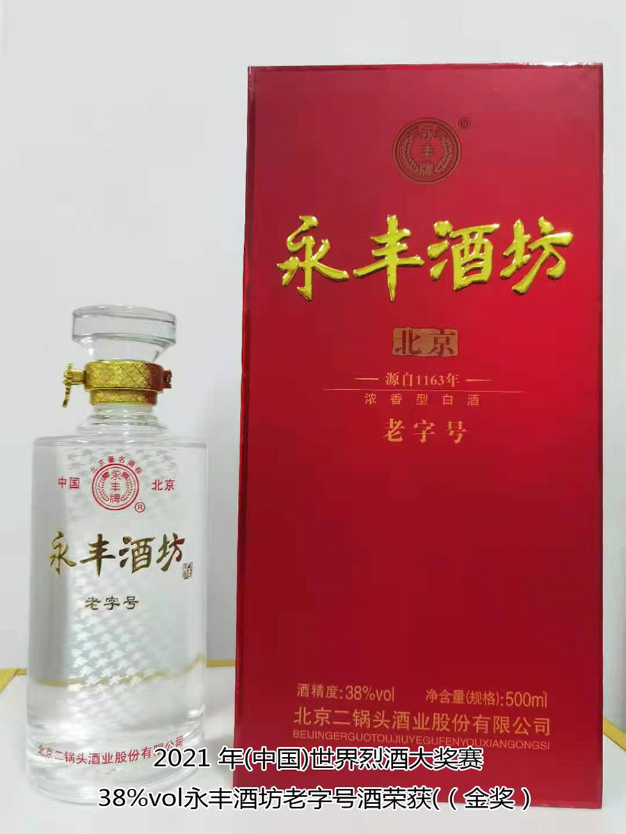 北京二鍋頭公司現(xiàn)有員工400余人,凈資產(chǎn)超億元,京王子酒、醉流霞酒、永豐二鍋頭等系列產(chǎn)品300余種。公司產(chǎn)品多次獲得各種優(yōu)質(zhì)產(chǎn)品稱號,“永豐牌”商標2000年度、2004年度、2007年度連續(xù)三屆被北京市工商行政管理局認定為北京市著名商標;2003年9月“永豐”二鍋頭、京王子酒被評為北京市優(yōu)秀新產(chǎn)品獎,2004年10月被授予“中國白酒質(zhì)量優(yōu)秀產(chǎn)品”稱號。2004年11月被授予首都市場“質(zhì)量、信譽、服務”優(yōu)秀企業(yè)、優(yōu)質(zhì)產(chǎn)品稱號;2006年11月被中國詩酒文化協(xié)會、酒文化專業(yè)委員會評為“中國歷史文化名酒”;2007年12月在中國釀酒工業(yè)協(xié)會組織的企業(yè)信用狀況評價中,被評為“AAA”級信用企業(yè),同年榮獲“中國質(zhì)量過硬知名品牌”;2010年被北京老字號協(xié)會評為“北京老字號”企業(yè);2011年5月被中華人民共和國商務部授予“中華老字號”企業(yè);2015年52度永豐酒坊老字號榮獲比利時布魯塞爾國際烈酒大獎“金獎”;2019年43度大師印象榮獲比利時布魯塞爾國際烈酒大獎“銀獎”;2021年度國際烈酒(中國)大獎賽。公司選送的四款產(chǎn)品榮獲“金獎”,他們是52度瓷瓶醉流霞酒、46度大師品簽酒、50度粱大俠(典藏)酒、38度永豐酒坊老字號酒、42度永豐二鍋頭酒(國運)一款產(chǎn)品榮獲“大金獎”,永豐酒坊(1163)52度酒榮獲2022年國際烈酒(中國)大獎賽“金獎”,永豐52度(神龍御品)酒、醉流霞35度(精品)酒分別榮獲兩枚銀獎。