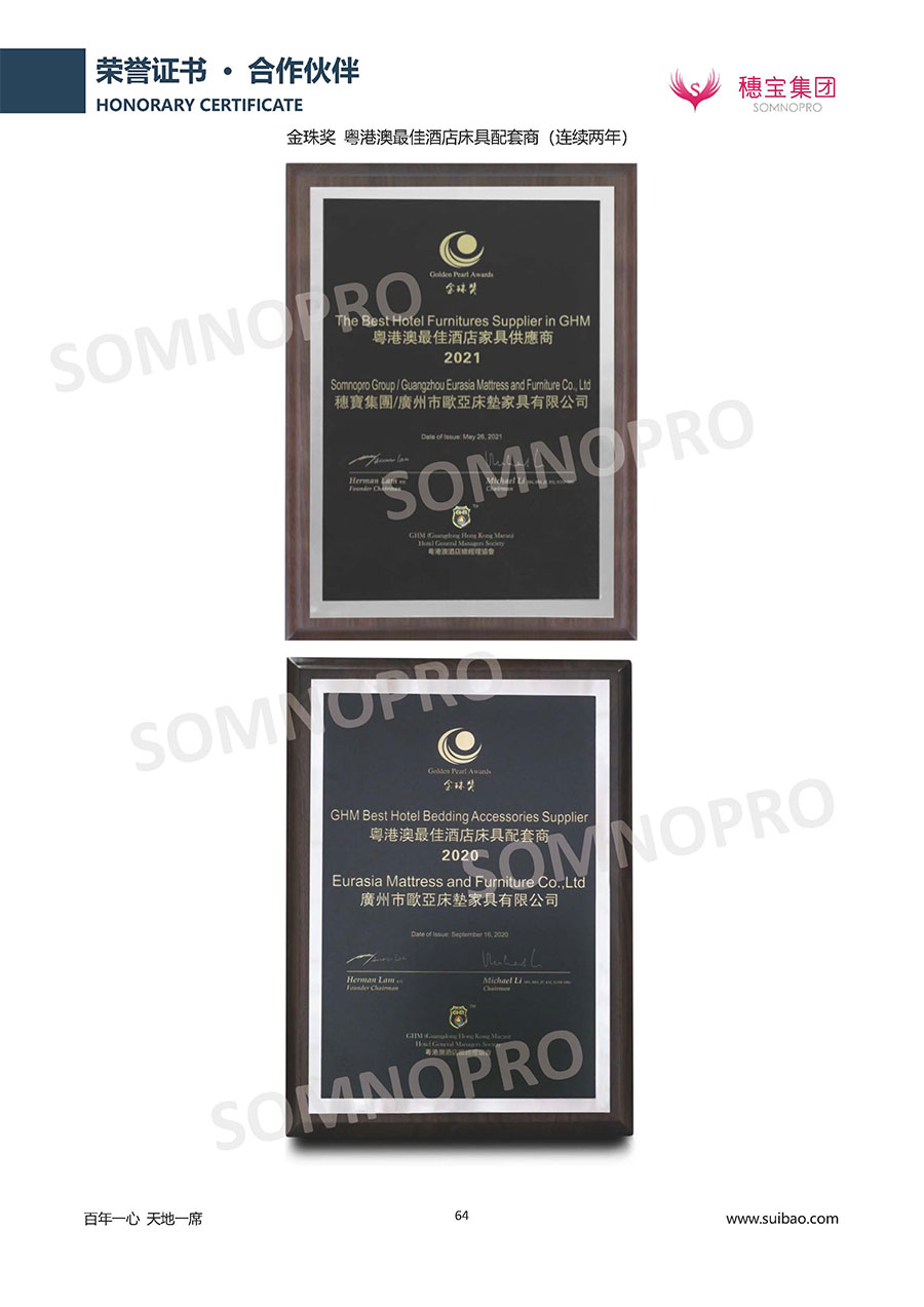 自1971年獨(dú)立研發(fā)生產(chǎn)出專屬國(guó)人的彈簧床墊,穗寶關(guān)于優(yōu)質(zhì)深度睡眠的研究已有半個(gè)世紀(jì)的歷史。穗寶一直專注床墊,專注中國(guó)消費(fèi)者的睡眠研究,針對(duì)中國(guó)人特點(diǎn)進(jìn)行優(yōu)化創(chuàng)新,不斷提升國(guó)人的睡眠體驗(yàn),只為成就每個(gè)晚上8小時(shí)的優(yōu)質(zhì)深度睡眠。憑借不斷革新的研發(fā)科技和深受消費(fèi)者信賴的產(chǎn)品品質(zhì),穗寶集團(tuán)旗下品牌和產(chǎn)品屢獲國(guó)內(nèi)外大獎(jiǎng),連續(xù)20年榮膺中國(guó)500最具價(jià)值品牌,品牌價(jià)值高達(dá)302.89億元。