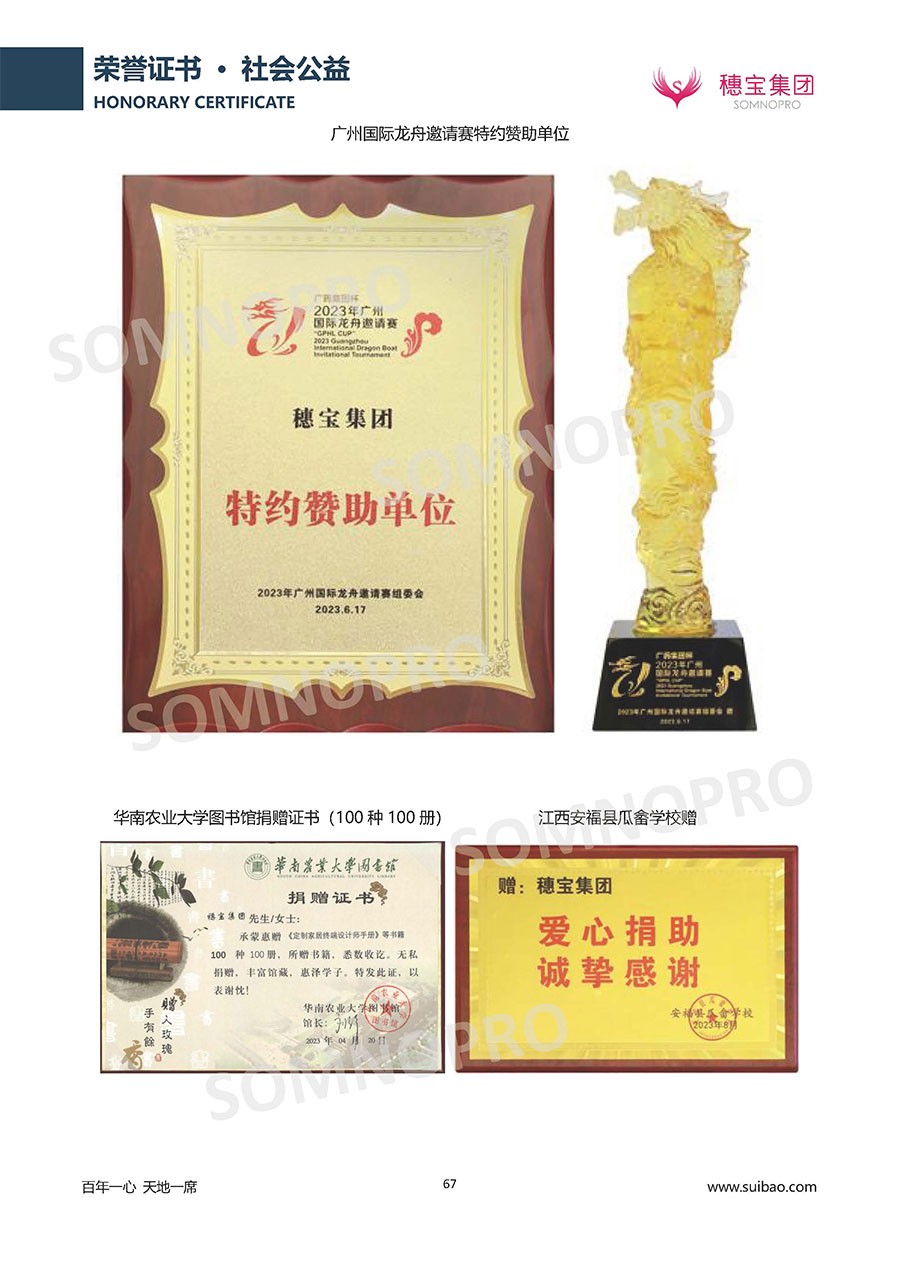 本著高品質(zhì)、高效率、重管理的原則,穗寶已通過(guò)ISO9001質(zhì)量管理體系認(rèn)證證書、ISO14001環(huán)境管理體系認(rèn)證證書、ISO45001職業(yè)健康安全管理體系認(rèn)證證書、中國(guó)環(huán)境標(biāo)志產(chǎn)品認(rèn)證證書、家居綠色環(huán)保領(lǐng)跑品牌、綠色正品家居品牌、企業(yè)標(biāo)準(zhǔn)“綠色領(lǐng)跑者”證書、CMS測(cè)量管理體系證書、CMS測(cè)量管理體系證書附件、廣東省“守信用重合同”企業(yè)、廣州歐亞-納稅信用A級(jí)納稅人(連續(xù)5年:2018-2022)、2024年中國(guó)500最具價(jià)值品牌,品牌價(jià)值高達(dá)302.89億元、廣東高價(jià)值商標(biāo)品牌(穗寶)、廣東省重點(diǎn)商標(biāo)保護(hù)名錄納入證明、廣州市勞動(dòng)關(guān)系和諧企業(yè)AA級(jí)。穗寶自創(chuàng)立以來(lái),不斷致力于新產(chǎn)品的設(shè)計(jì)與研發(fā),多次在國(guó)內(nèi)家具展會(huì)屢獲獎(jiǎng)項(xiàng),產(chǎn)品暢銷國(guó)內(nèi)外,深受客戶一致好評(píng)。
