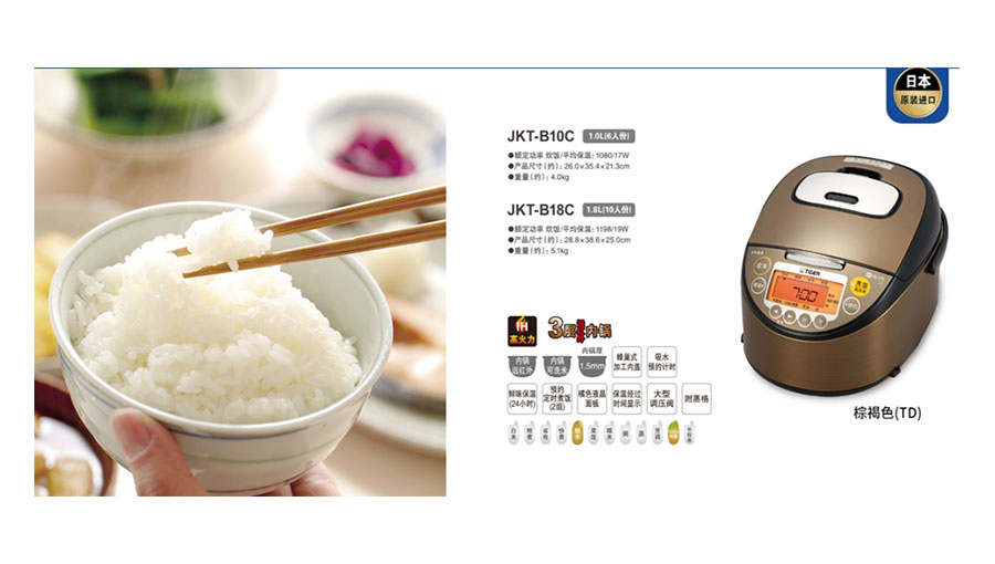 TIGER虎牌創(chuàng)立于1923年,從生產(chǎn)熱水瓶開始,發(fā)展到電子鍋、電飯煲、電熱水瓶、廚房用具等多個系列的產(chǎn)品,致力于為顧客提供生活所需的日常產(chǎn)品。