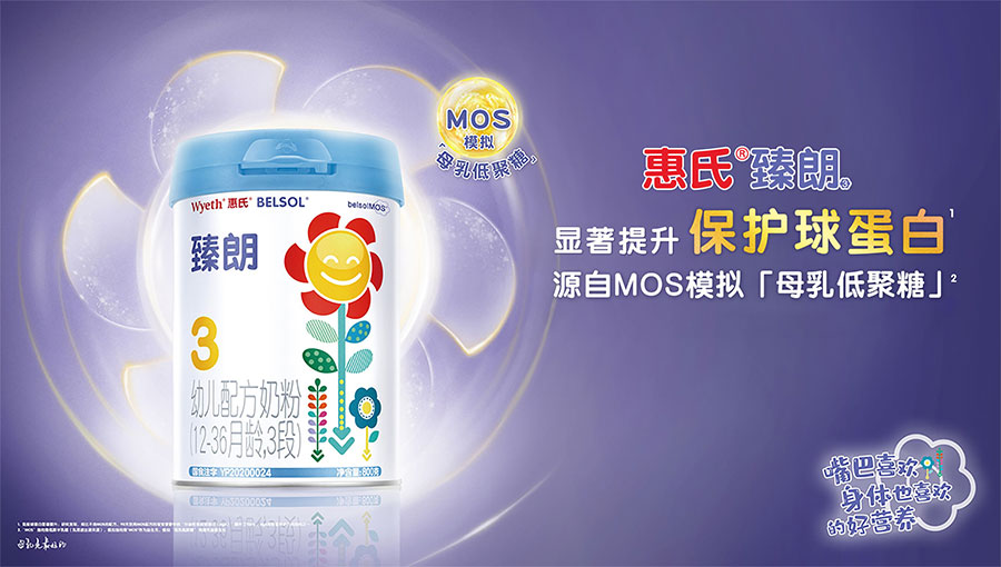 在中國(guó)市場(chǎng),惠氏營(yíng)養(yǎng)品有多款產(chǎn)品滿足消費(fèi)者的不同需求,包括愛爾蘭原裝進(jìn)口的啟韻tm和啟賦®系列,瑞士生產(chǎn)并進(jìn)口的惠氏®鉑臻®3、惠氏®鉑臻®幼兒樂tm3,以及滿足孕期和哺乳期媽媽不同階段營(yíng)養(yǎng)所需的Materna®系列等品牌,從懷孕的第一天起關(guān)懷媽媽和寶寶人生最初最重要的一千天。嬰幼兒配方奶粉是惠氏營(yíng)養(yǎng)品最重要的產(chǎn)品線,其核心是以科學(xué)創(chuàng)新和實(shí)踐研究為基礎(chǔ)的配方。