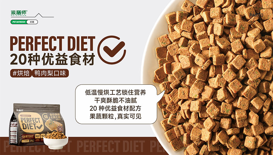目前派膳師已擁有鮮食、零食、主糧等產(chǎn)品線,主打中高端主糧品類。全新(Perfect Diet)優(yōu)益膳食犬糧系列,倡導(dǎo)飲食多樣性,引入優(yōu)益食材(Superfood)理念,主打食材可見化,為國內(nèi)狗狗提供更科學(xué)健康的多元化營養(yǎng)膳食。