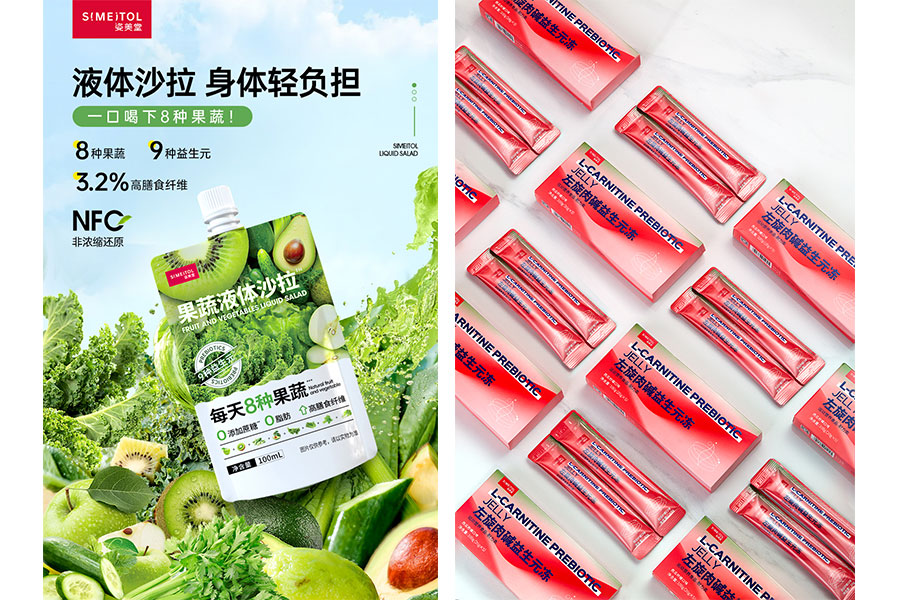 主要產品:姿美堂膠原蛋白肽、酵素制品、谷物蛋白棒、益生菌、左旋肉堿益生元果凍