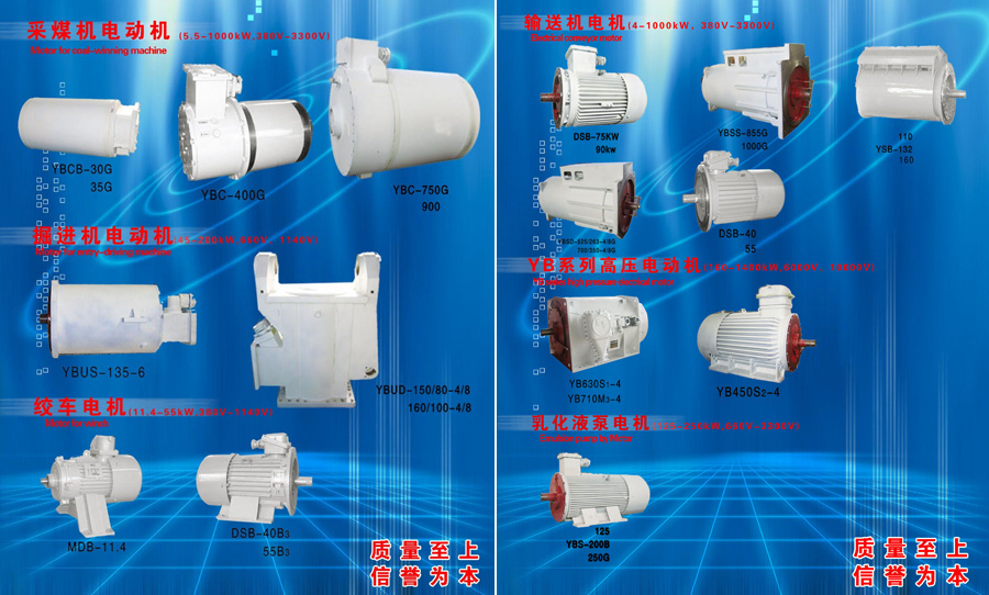 目前公司可生產(chǎn)4~1800KW,電壓等級(jí)380V、660V、1140V、3300V、6000V、10000V的礦用采煤機(jī)、運(yùn)輸機(jī)、掘進(jìn)機(jī)、乳化液泵、絞車、風(fēng)機(jī)、YB電機(jī)等七大系列500多個(gè)品種,通過(guò)技術(shù)開(kāi)發(fā),新研制了YBBP變頻一體機(jī)等高技術(shù)產(chǎn)品。