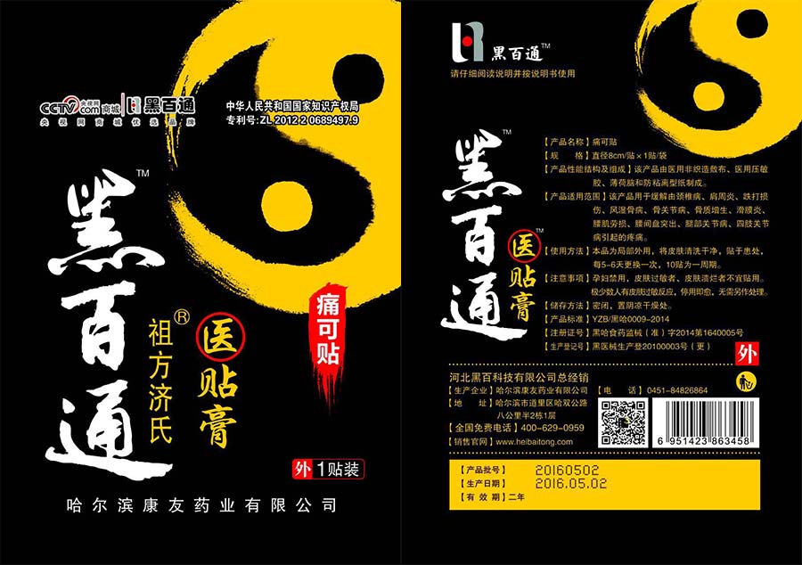 2016年成立河北黑百科技有限公司,“黑百通醫(yī)貼膏”目前正熱銷全國。“誠信、團結、拼搏、創(chuàng)新”是哈爾濱康友藥業(yè)有限公司全體員工執(zhí)著追求的企業(yè)理念。本企業(yè)始終把全體員工的工作意識,融匯到產品生產和售后服務的每個環(huán)節(jié),實施全面質量管理,建立、健全質量保證體系。