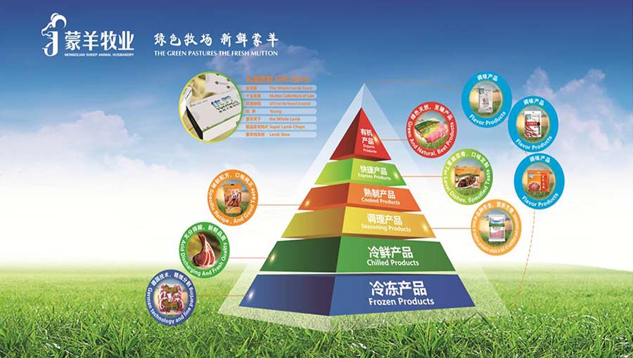 主要產(chǎn)品:蒙羊牌冷凍產(chǎn)品、冷鮮產(chǎn)品、調(diào)理產(chǎn)品、熟食產(chǎn)品、快捷產(chǎn)品、有機(jī)產(chǎn)品