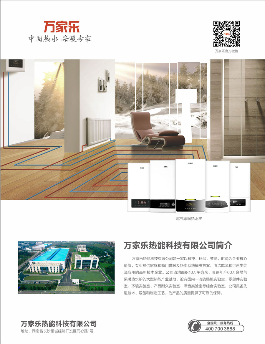萬家樂熱能科技有限公司是一家以科技、環(huán)保、節(jié)能、時尚為企業(yè)核心價值,專業(yè)提供家庭和商用供暖及熱水系統(tǒng)解決方案、清潔能源和可再生能源應(yīng)用的高新技術(shù)企業(yè)。公司占地面積10萬平方米,具備年產(chǎn)30萬臺燃?xì)獗趻鞝t的大型熱能產(chǎn)業(yè)基地,設(shè)有國內(nèi)一流的整機(jī)實驗室、零部件實驗室、環(huán)境實驗室、產(chǎn)品耐久實驗室、噪音實驗室五個綜合實驗室,引進(jìn)歐美等國的先進(jìn)技術(shù)、設(shè)備和制造工藝,為產(chǎn)品的質(zhì)量提供了可靠的保障。