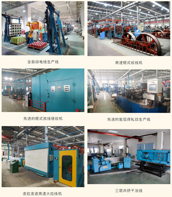 此外,公司車間生產(chǎn)設(shè)備也在不斷升級改造,擁有先進的全自動電線生產(chǎn)線(擠塑、成圈、包裝、碼垛一體機)、三層共擠干法交聯(lián)線(配置德國SIKORA在線測偏儀),也具有連拉連退高速大拉線機、先進的框式放線倍絞機、高速框式絞線機、先進的氬弧焊軋紋生產(chǎn)線等自動化設(shè)備,提高了公司裝備智能化、自動化程度,為企業(yè)數(shù)字化改造奠定基礎(chǔ)。