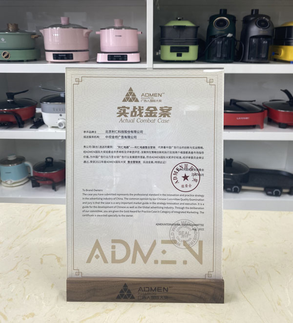 2022年第十一屆ADMEN國際大獎8月16日在天津揭曉并頒獎,北京利仁科技股份有限公司選送的《“利仁電器”》央視案例榮獲整合營銷類實戰(zhàn)金案獎。