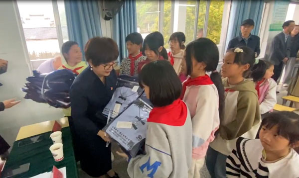 為積極響應(yīng)市關(guān)工委關(guān)心下一代工作的號(hào)召,4月13日下午,安徽永峰制衣有限公司總經(jīng)理葉建萍參加了由市關(guān)工委牽頭組織黃山日?qǐng)?bào)社、市婦聯(lián)、休寧縣關(guān)工委等多個(gè)部門參加的看望休寧縣南塘小學(xué)留守兒童和捐贈(zèng)校服活動(dòng)。