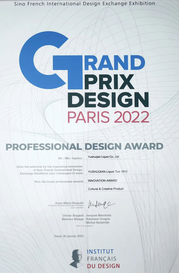 榆樹錢酒業(yè)榮獲法國雙面神GPDP AWARD國際設(shè)計大獎-國際創(chuàng)新設(shè)計獎