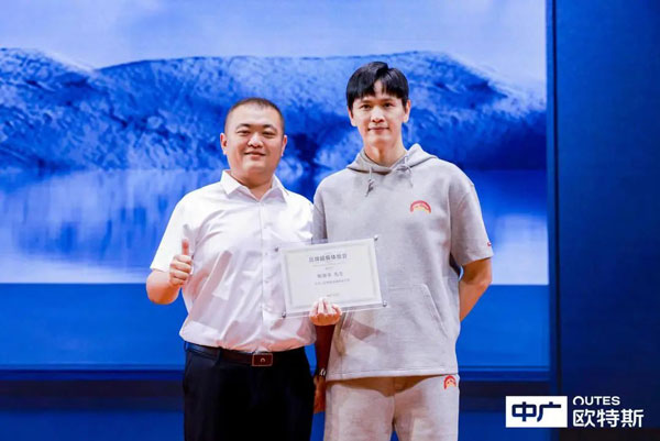 在現(xiàn)場(chǎng)嘉賓的共同見證下,浙江中廣電器集團(tuán)股份有限公司品牌總監(jiān)盧尚有為鮑春來現(xiàn)場(chǎng)頒發(fā)了“品牌超級(jí)體驗(yàn)官”授牌,正式宣告熱泵領(lǐng)軍者中廣歐特斯與羽毛球世界冠軍鮑春來強(qiáng)強(qiáng)聯(lián)手,開啟一段全新的熱愛之旅。同時(shí),為恭賀鮑春來喬遷新禧,中廣歐特斯還現(xiàn)場(chǎng)贈(zèng)送了一臺(tái)熱泵衣物護(hù)理機(jī)新品,為其帶來全新的衣物護(hù)理體驗(yàn)。