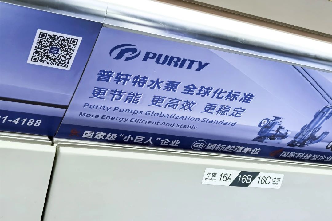 “普軒特號”高鐵專列以“普軒特水泵,全球化標(biāo)準(zhǔn)”為主旨,在車廂內(nèi)以全面覆蓋的宣傳形式,將專列打造成展示普軒特形象的“移動(dòng)展廳”,深度刻畫普軒特對全球標(biāo)準(zhǔn)的堅(jiān)定態(tài)度
