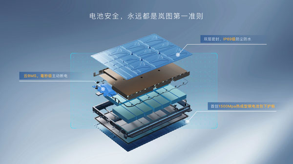 在電動(dòng)車最為關(guān)鍵的電池安全方面,嵐圖采用5層PACK方案,首創(chuàng)的“琥珀電池”采用三維隔熱墻技術(shù),從結(jié)構(gòu)到智能,全方位保障電池安全。在全球首個(gè)電動(dòng)車涉水后底部碰撞公開測試中,嵐圖汽車獲得中汽中心“未冒煙、未起火、未爆炸、未進(jìn)水”的測試成績,樹立了三元鋰電池系統(tǒng)安全新標(biāo)桿。此外,嵐圖研發(fā)了云BMS系統(tǒng)和PDD毫秒級(jí)緊急斷電功能,將電池危險(xiǎn)控制在萌芽階段。