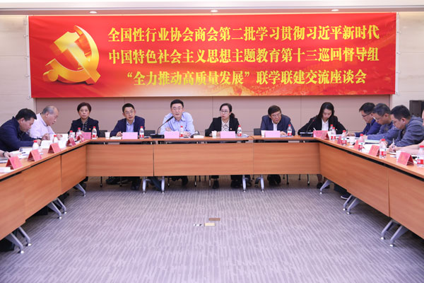 10月23日,全國(guó)性行業(yè)協(xié)會(huì)商會(huì)第二批學(xué)習(xí)貫徹習(xí)近平新時(shí)代中國(guó)特色社會(huì)主義思想主題教育第十三巡回督導(dǎo)組(以下簡(jiǎn)稱第十三巡回督導(dǎo)組)“全力推動(dòng)高質(zhì)量發(fā)展”聯(lián)學(xué)聯(lián)建交流座談會(huì)在中國(guó)質(zhì)量檢驗(yàn)協(xié)會(huì)召開(kāi)。第十三巡回督導(dǎo)組組長(zhǎng)唐祖君出席會(huì)議并講話,第十三巡回督導(dǎo)組姜亞楠、祝秀森到會(huì)并作指導(dǎo)。中國(guó)質(zhì)量檢驗(yàn)協(xié)會(huì)、中國(guó)計(jì)量協(xié)會(huì)、中國(guó)節(jié)能協(xié)會(huì)、中國(guó)防偽行業(yè)協(xié)會(huì)、中國(guó)食品藥品企業(yè)質(zhì)量安全促進(jìn)會(huì)等5家協(xié)會(huì)商會(huì)的30多名黨員、干部出席會(huì)議。