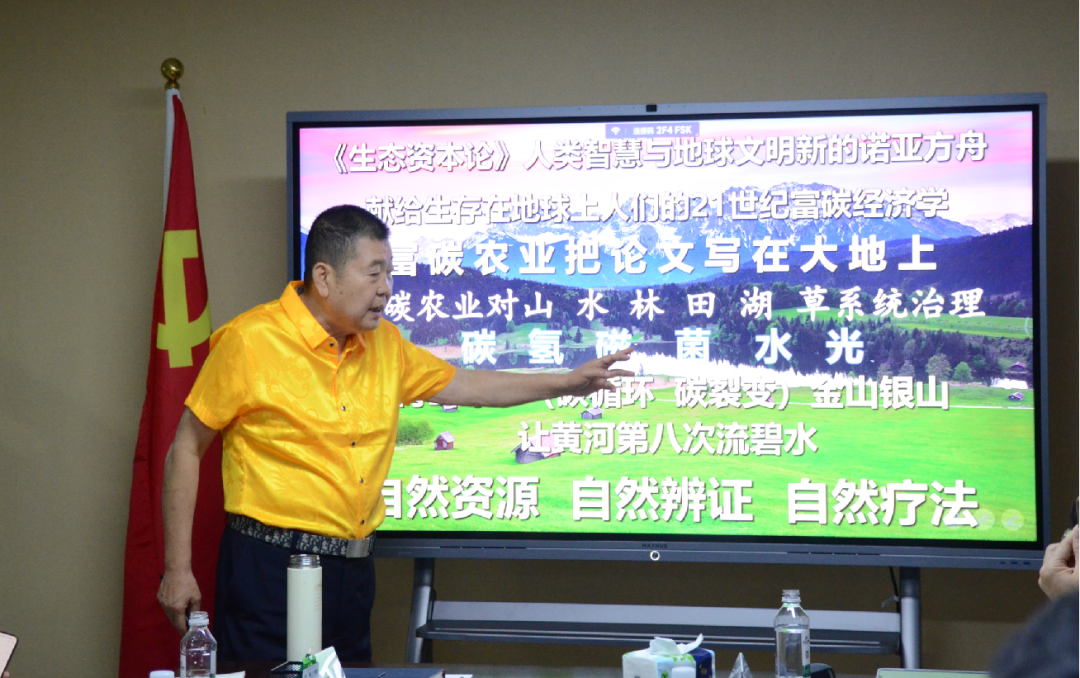 在交流會(huì)上,袁東來教授以《富碳農(nóng)業(yè)“碳”索未來》為題進(jìn)行專題授課,介紹了碳中和、富碳農(nóng)業(yè)及其發(fā)展創(chuàng)新理念等相關(guān)理論知識(shí),對(duì)國(guó)際國(guó)內(nèi)相關(guān)實(shí)踐經(jīng)驗(yàn)進(jìn)行了講解,深入闡釋了碳中和與地區(qū)高質(zhì)量發(fā)展的關(guān)系并就富碳農(nóng)業(yè)的發(fā)展與展望、“雙碳”背景下農(nóng)業(yè)產(chǎn)業(yè)的綠色轉(zhuǎn)型等問題進(jìn)行了分析與解讀。集團(tuán)董事長(zhǎng)黃慶明、集團(tuán)監(jiān)事長(zhǎng)云恒寧、集團(tuán)顧問團(tuán)隊(duì)劉錦超教授、柏威廉教授、吳俁達(dá)教授及全體管理人員參加了此次交流。
