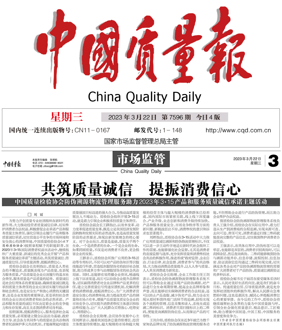 ——中國(guó)質(zhì)量檢驗(yàn)協(xié)會(huì)防偽溯源物流管理服務(wù)助力2023年3·15產(chǎn)品和服務(wù)質(zhì)量誠(chéng)信承諾主題活動(dòng)