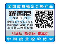 【“全國質(zhì)檢穩(wěn)定合格產(chǎn)品”專用標(biāo)識】具有專屬的知識產(chǎn)權(quán)(經(jīng)中國版權(quán)保護(hù)中心審核,國家版權(quán)局對“全國質(zhì)檢穩(wěn)定合格產(chǎn)品”專用標(biāo)識頒發(fā)了《作品登記證書》,登記號:國作登字-2015-L-00188456),基本規(guī)格為5cm2,集電話電碼防偽查詢、二維碼在線掃描、微信驗(yàn)證等多種功能于一體,綜合運(yùn)用了紐索幣紋、微縮文字、熒光激發(fā)油墨等多種防偽技術(shù);專用標(biāo)識加貼在產(chǎn)品或包裝上,消費(fèi)者只需要用座機(jī)(手機(jī))電話撥打全國范圍內(nèi)都不需要加區(qū)號的特服號碼95105365或使用手機(jī)掃描二維碼或登陸網(wǎng)站(http://www.12365114.cn)就可直接查詢驗(yàn)證加貼專用標(biāo)識的產(chǎn)品為第三方國家質(zhì)量專業(yè)機(jī)構(gòu)客觀、公正證明的全國質(zhì)量檢驗(yàn)穩(wěn)定合格產(chǎn)品,形成企業(yè)自己獨(dú)有的比較優(yōu)勢,助力企業(yè)通過“質(zhì)量檢驗(yàn)”的比較優(yōu)勢去贏得消費(fèi)者更多的信任。